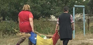 В Единцах женщины превратили государственный флаг в мешок для мусора