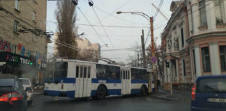 В центре Кишинева троллейбус врезался в столб