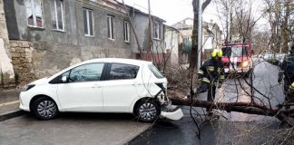 В центре Кишинева дерево упало на автомобиль