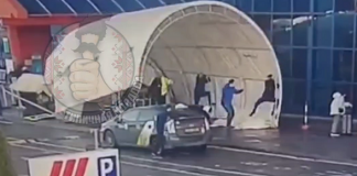 (видео) В столичном аэропорту ветер снёс палатку, предназначенную для пассажиров