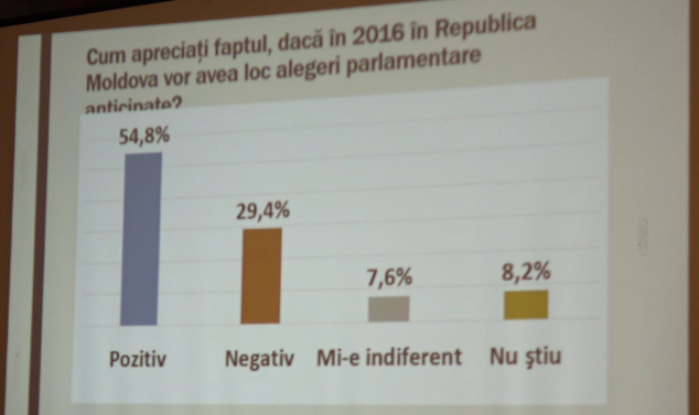 Таким образом, 54,8% граждан Республики Молдова настаивают на том, чтобы в стране прошли досрочные парламентские выборы.