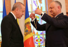 Высшую государственную награду, Реджеп Эрдоган получил из рук Президента Молдовы за оказание помощи и существенный вклад в развитие двусторонних отношений между двумя государствами.