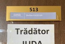 На двери кабинета депутата-перебежчика Штефана Гацкана появилась новая табличка с надписью "предатель Иуда".