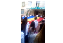 В столичном технологическом колледже на Рышкановке на первой учебной линейке вынесли румынский флаг, вместо флага Молдовы.