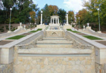 Сооружение отремонтировали всего год назад, но колонны и ступени ротонды уже сильно повреждены.