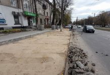 Продолжаются работы по ремонту тротуаров на улице Тудор Владимиреску в секторе Рышкановка.