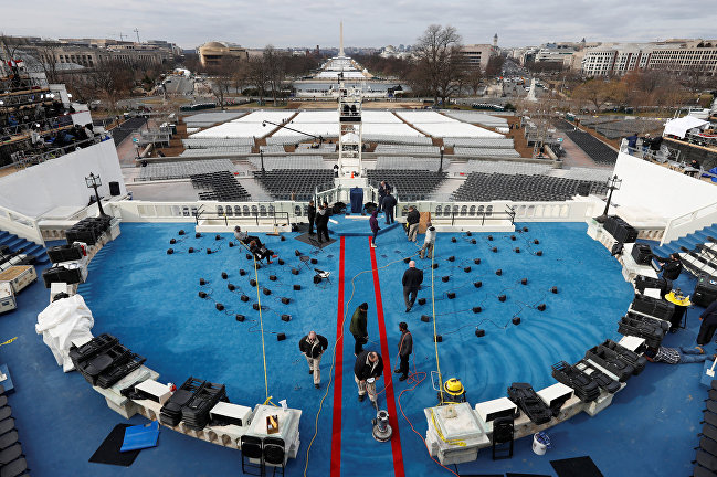 На специально смонтированной платформе (площадь конструкции составляет 929 кв. метров) Трамп принесет присягу и станет 45-м президентом США. После принятия президентской клятвы он выступит с инаугурационной речью, в которой, как сообщил его представитель, поднимет все вопросы, над которыми он будет работать в свое президентство.