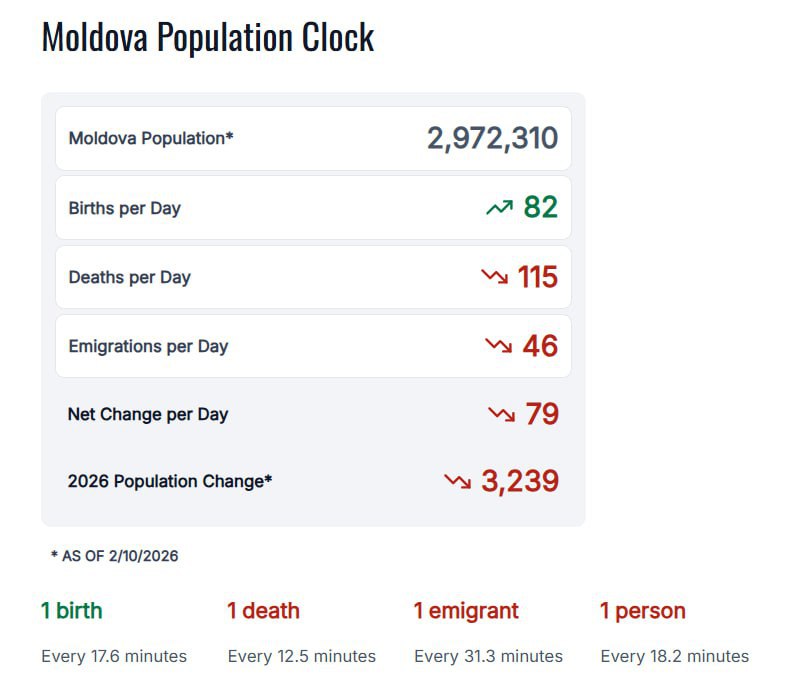 С 1 января по 10 февраля 2026 года население Республики Молдова сократилось на 3239 человек. Из них 1886 граждан уехали за границу навсегда.