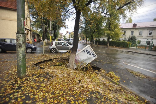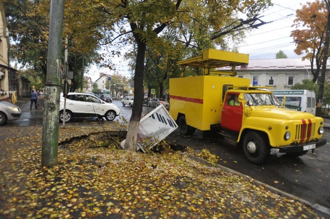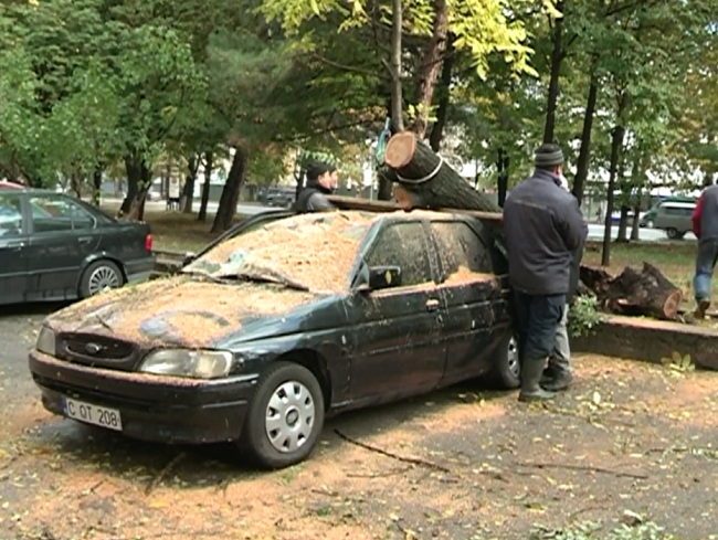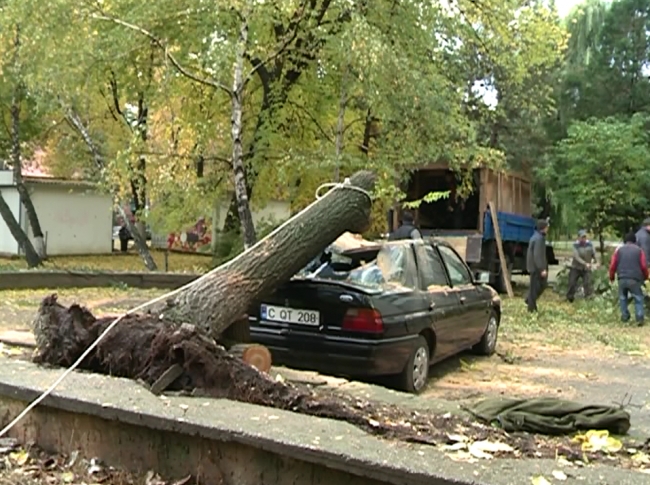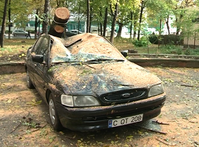 În total, în Chişinău au fost înregistrate cinci cazuri în care vîntul a doborît copaci sau crengi masive. Unul dintre cele două automobile avariate a fost distrus practic în întregime.