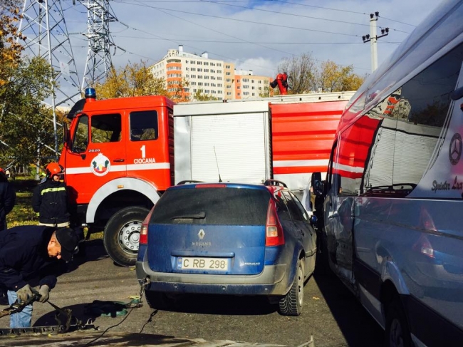 Potrivit informațiilor cazul a avut loc în această dimineață la intersecția străzilor Vadul lui Vodă și Maria Drăgan din sectorul Ciocana al capitalei. În urma impactului, şase pasageri din microbuz s-au ales cu traumatisme grave, coate rupte, fracturi ale mîinilor şi lovituri la cap. Victimele au fost transportate la Spitalul de Urgenţă.