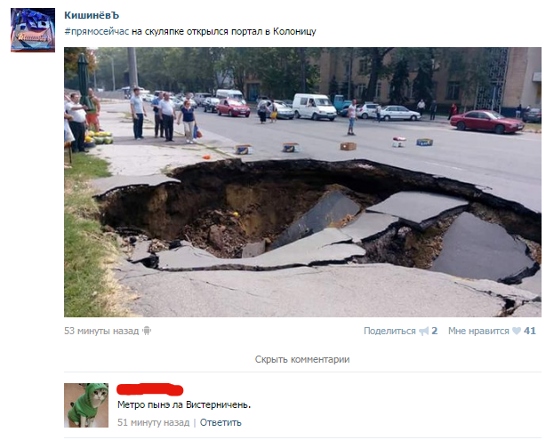 Кишиневцы уже окрестили 5-метровую яму «порталом в Колоницу».
