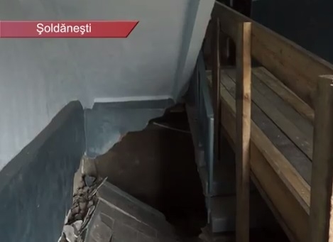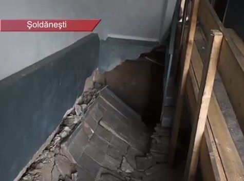 Locatarii unui bloc din orașul Șoldănești s-au ales cu o sperietură după ce duminică seara, 5 martie, o porțiune de podea din scara blocului s-a prăbușit.