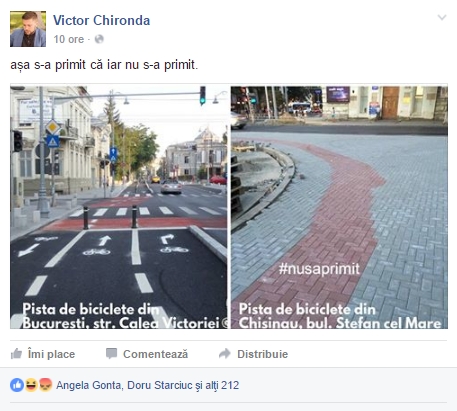Amintim de asemenea că anterior unul dintre cei mai populari bloggeri ruși Ilia Varlamov a criticat pe blogul său turistic infrastructura Chișinăului, în special pista pentru bicicliști. Varlamov afirmă că pista pentru circulația bicicliștilor din Chișinău se clasează pe primul loc în topul celor mai proaste piste din lume, postînd și imagini relevante făcute în capitala ţării noastre. „Iată ce se întîmplă cînd în loc de creier în capul primarului e mămăligă", a scris bloggerul.
