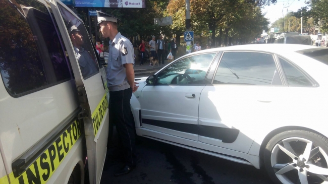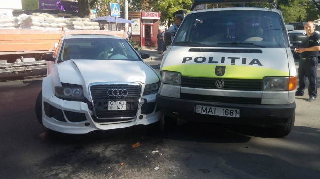 Сегодня утром в столичном секторе Телецентр произошло ДТП. Не пересечении улицы Докучаева и Хынчештского шоссе столкнулись автомобили Audi и полицейский микроавтобус.