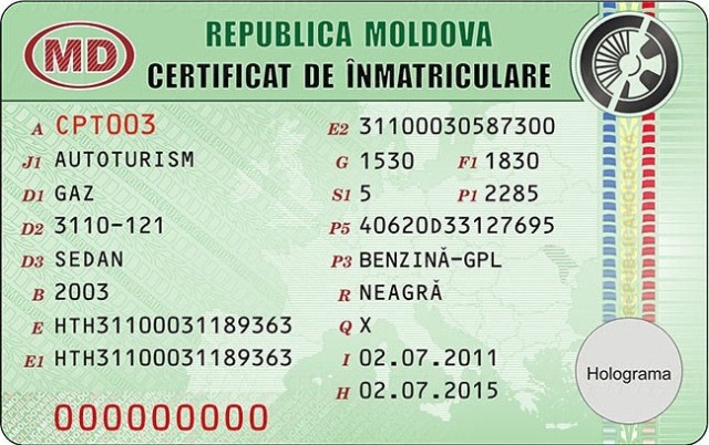 Certificat de înmatriculare a vehiculelor de tip vechi: