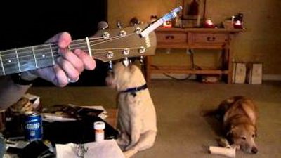 Эксперты предполагают, что бульдог, несмотря на глухоту, ощущает гитарные вибрации и двигается им в такт.