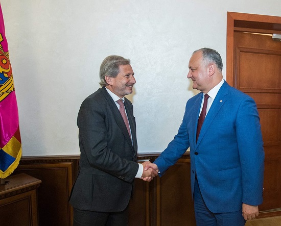 Сегодня, 3 июня, глава молдавского государства Игорь Додон провел встречу с европейским комиссаром по вопросам расширения и политики добрососедства Йоханнесом Ханом, который находится в Молове с рабочим визитом. Во встрече также принял участие глава Делегации Европейской комиссии в Молдове Петер Михалко, сообщает Actualitati.md.