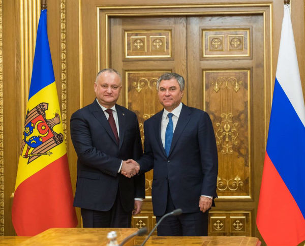 Игорь Додон и Вячеслав Володин обсудили текущее развитие молдо-российских отношений, которые получили серьёзный импульс в ходе недавнего официального визита Президента РМ в Москву.  Представители Молдовы и России, также приветствовали те договоренности, которые были достигнуты Президентами РМ и РФ. Отметили и  высокий уровень организации и результативность прошедшего в сентябре в Кишинёве первого молдо-российского экономического форума.