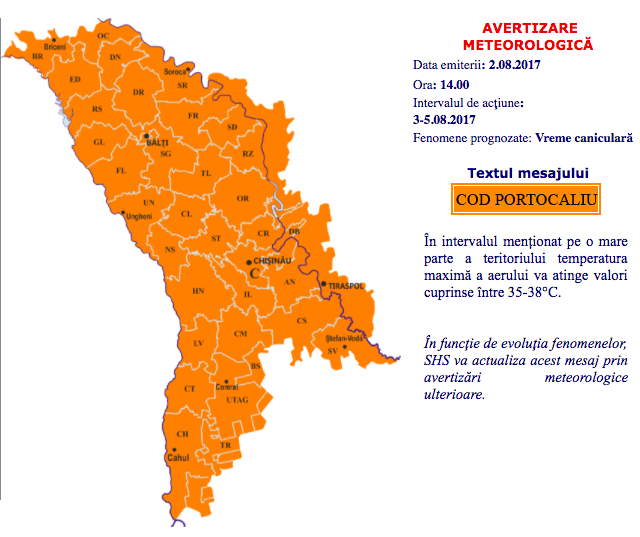 По мнению специалистов, из-за надвигающейся жары из Африки в Молдове могут объявить красный код. На данный момент в республике оранжевый код, а в Румынии уже объявлен красный.