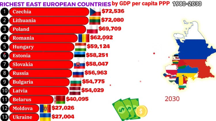 Республика Молдова и Украина не смогут выйти из зоны бедности даже к 2030 году. Об этом свидетельствует новый рейтинг, составленный платформой Data Animator на основе динамики ВВП на душу населения по паритету покупательной способности.