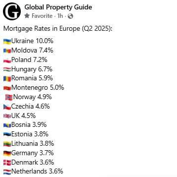 Средняя ставка по ипотечным кредитам в стране составляет 7,4%, уступая лишь Украине, где показатель достигает 10%.