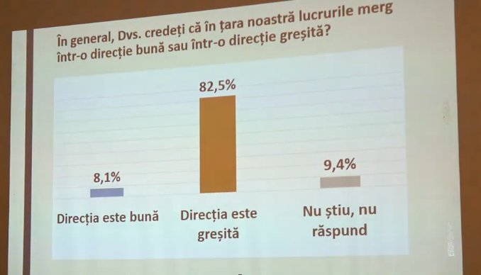 Doar 8,1% dintre cetățeni consideră că direcția este una bună iar 9,4 la sută dintre respondenți nu au dorit sau nu au știut ce să răspundă la această întrebare.