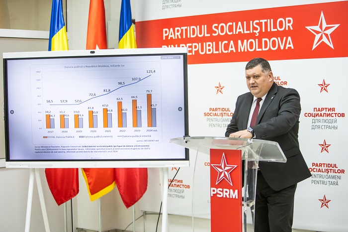 По словам депутата, за четыре года правления PAS Молдова заняла более 50 млрд леев в кредит, при этом большая часть средств расходуется на покрытие текущих бюджетных расходов, а экономический рост остаётся нулевым, с заметным спадом за последние три года.