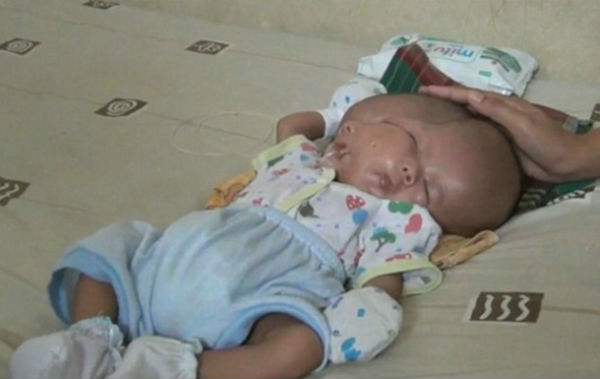 Младенец, имеющий два лица и два мозга, находящихся в одной голове, появился на свет в одном из индонезийских городов.